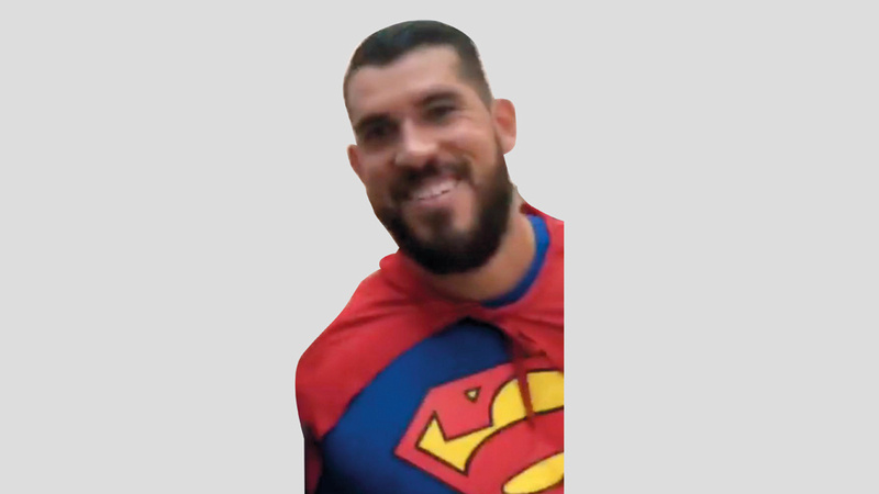 حرص المحترف البرازيلي في الفجيرة، فرناندو غابرييل، على الظهور بملابس بطل سلسلة أفلام الأكشن «سوبرمان» خلال مشاركة مواطنه ولاعب النصر الحالي، صومائيل روزا، في احتفالية أقامها الأخير بمناسبة عيد ميلاد ابنه في دبي. يذكر أن غابرييل زامل روزا، الموسم الماضي، في حتا.