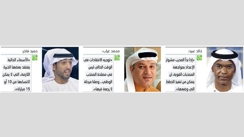 من جهتهم، أكد رياضيون أن المنتخب الوطني في الوقت الحالي بات يحتاج إلى الدعم أكثر من أي وقت مضى، مشيرين إلى أن الاستراتيجية التي يتبعها المدرب ألبيرتو زاكيروني، باتت أمراً واقعاً، ويجب أن يتم دعم المدرب الإيطالي في مسيرته مع «الأبيض»، متمنين أن يكون المدرب على صواب، وأن تثمر طريقته عن تحقيق الهدف الذي يصبو إليه الجميع بفوز الإمارات بلقب كأس آسيا.