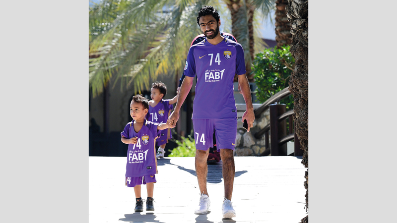 حسين الشحات يصطحب نجليه لحضور التدريبات. من المصدر