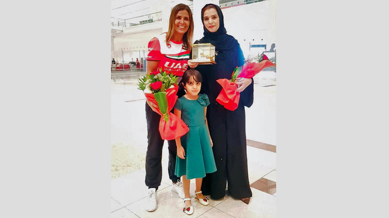 نوره الجسمي مع مدربه منتخب الفتيات. من المصدر
