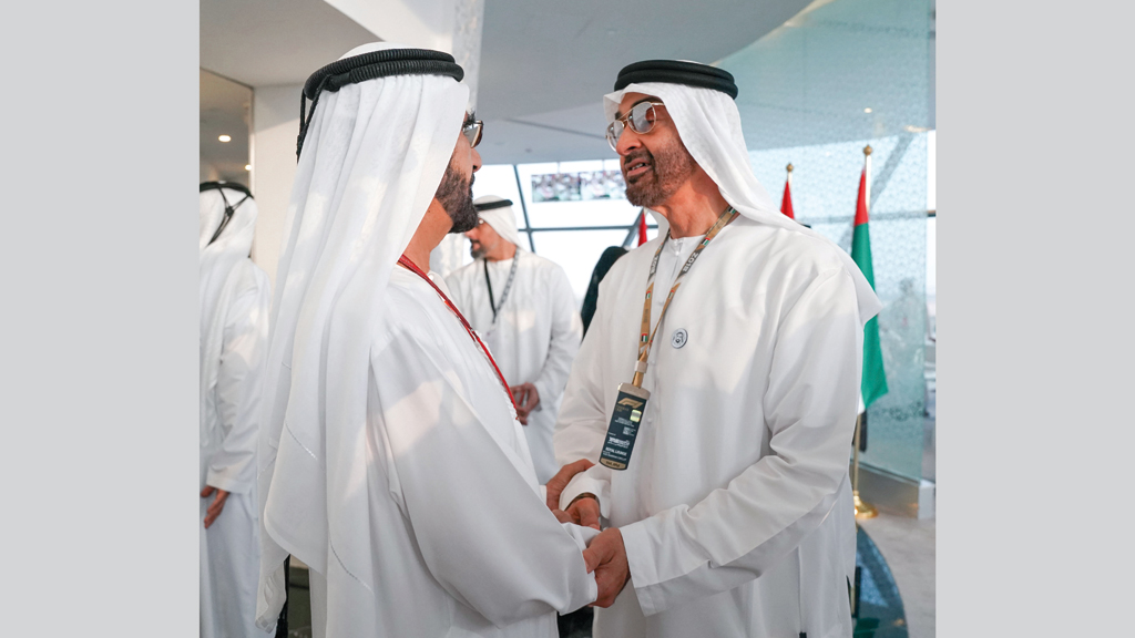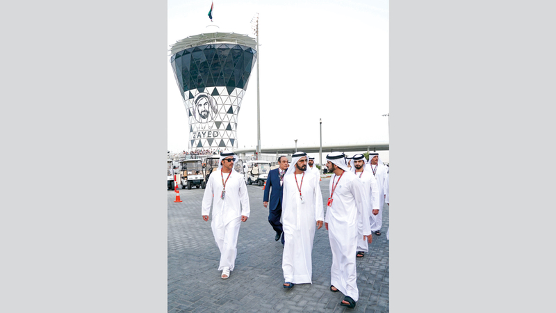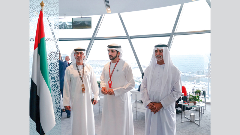 شهد صاحب السمو الشيخ محمد بن راشد آل مكتوم، نائب رئيس الدولة رئيس مجلس الوزراء حاكم دبي، وصاحب السمو الشيخ محمد بن زايد آل نهيان، ولي عهد أبوظبي نائب القائد الأعلى للقوات المسلحة، وصاحب السمو الملكي الأمير محمد بن سلمان آل سعود، ولي العهد نائب رئيس مجلس الوزراء وزير دفاع المملكة العربية السعودية، أمس، بحضور ضيوف الدولة وسمو أولياء العهود والشيوخ، منافسات جولة أبوظبي لبطولة العالم لسباقات «الفورمولا1» في موسم 2018 (جائزة الاتحاد للطيران الكبرى)، وذلك على مضمار حلبة مرسى ياس في أبوظبي.