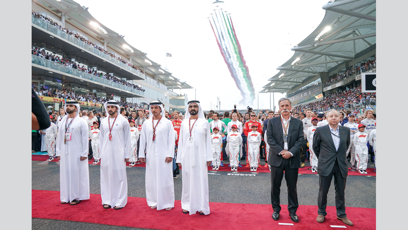 وكان صاحب السمو الشيخ محمد بن راشد آل مكتوم، نائب رئيس الدولة رئيس مجلس الوزراء حاكم دبي، قد حضر إلى نقطة انطلاق سيارات سباق جائزة الاتحاد للطيران الكبرى لـ«الفورمولا1» (أبوظبي 2018)، معلناً بدء انطلاق سباق الجولة الختامية لموسم 2018، بعد عزف السلام الوطني للدولة.