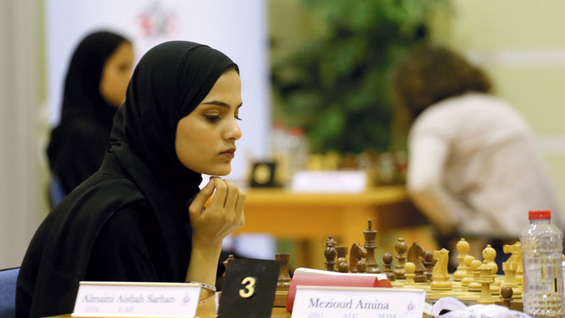 عائشة المعيني خلال منافسات السيدات في بطولة الشطرنج العربية. من المصدر