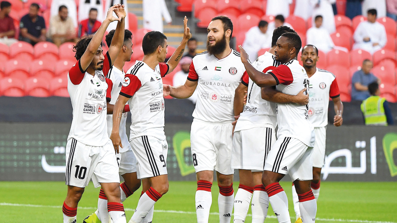 لاعبو الجزيرة ظهروا بشكل مميز أمام الصقور، وخاصة مبخوت وخلفان. تصوير: إيريك أرازاس