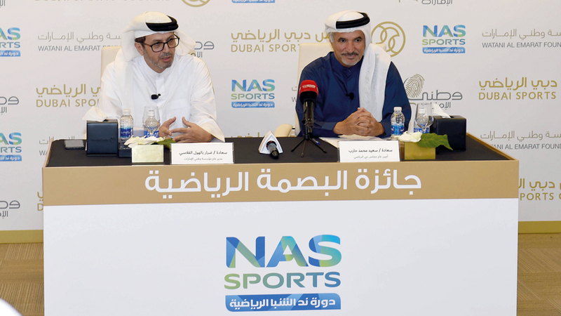 وعقد مجلس دبي الرياضي، مؤتمراً صحافياً، أمس، بحضور سعيد حارب، والمدير التنفيذي لمؤسسة وطني الإمارات، ضرار بالهول الفلاسي، ومساعد الأمين العام للمجلس، ناصر أمان آل رحمة، وعدد من المديرين في المؤسستين للكشف عن المحاور السبعة للتنافس وشروط الترشح «للبصمة الرياضية».