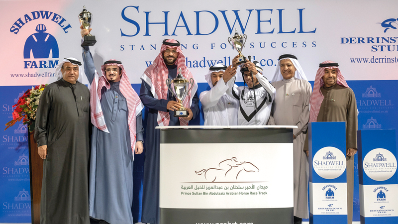 فاز الجواد «طلاب الخالدية» العائد لإسطبلات الخالدية للأمير خالد بن سلطان بن عبدالعزيز، بكأس آل مكتوم للجياد العربية الأصيلة، ضمن فعاليات كرنفال مزارع وإسطبلات شادويل على جائزة سمو الشيخ حمدان بن راشد آل مكتوم للخيول العربية الأصيلة، بميدان الأمير سلطان بن عبدالعزيز في العاصمة السعودية الرياض، أول من أمس.