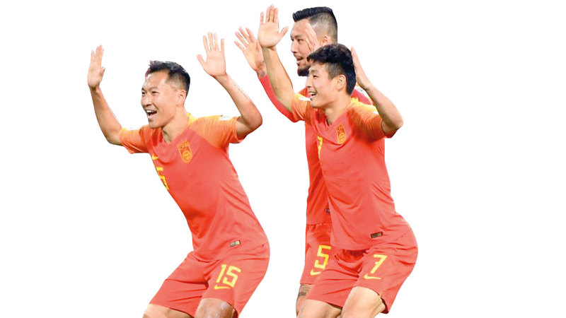 لاعبو الصين يرقصون فرحاً بالتأهل. تصوير: إريك أرازاس