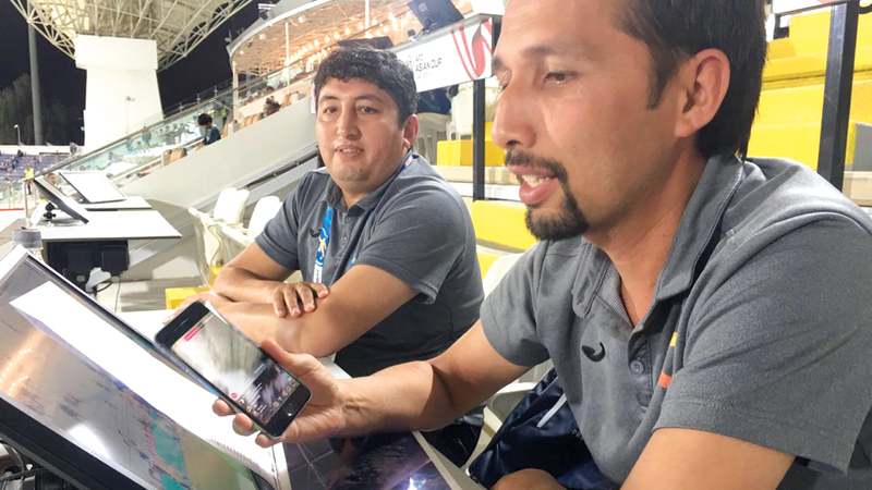 يجلس الصحافي الأوزبكي، نادر خوجا، المرافق لبعثة منتخب بلاده في أمم آسيا لكرة القدم، في منطقة عالية بمنصة الإعلاميين، ليكون مطلعاً على كل أجزاء الملعب، وينقل كل تفاصيل مباريات «الذئاب البيضاء» إلى 25 ألف متابع، عبر حسابه بموقع التواصل الاجتماعي «إنستغرام»، عبر خاصية «البث المباشر»، التي تتيح له التعليق على مجريات المباراة، بجانب الرد على أسئلة المتابعين.