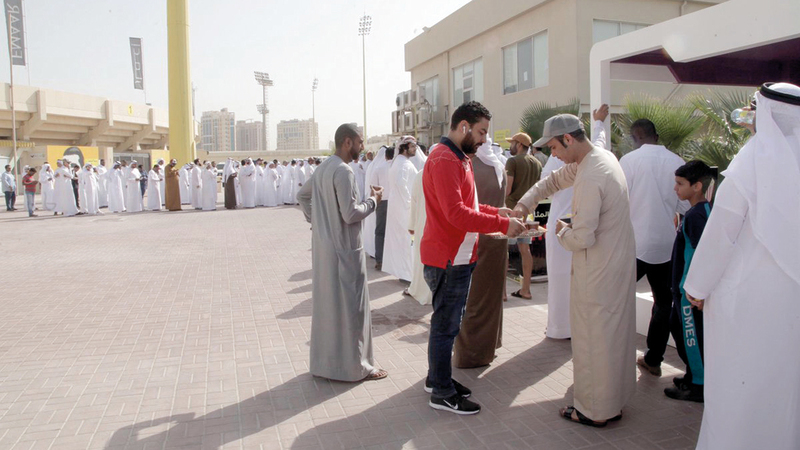 شهدت عملية توزيع تذاكر مباراة المنتخب الوطني أمام قطر في نصف نهائي كأس آسياً، غداً، إقبالاً كبيراً من الجمهور، الذي توجه إلى منافذ توزيع التذاكر منذ وقت مبكر، أمس، ورغم إعلان مجلس أبوظبي الرياضي آلية توزيع التذاكر، وأنها ستبدأ في الساعة العاشرة من صباح أمس، فإن الجمهور توجه إلى منافذ التوزيع قبل أكثر من ساعة من الموعد المحدد، وكان الحضور كبيراً، ما جعل بعض المنافذ تبدأ في توزيع التذاكر قبل الوقت المحدد.