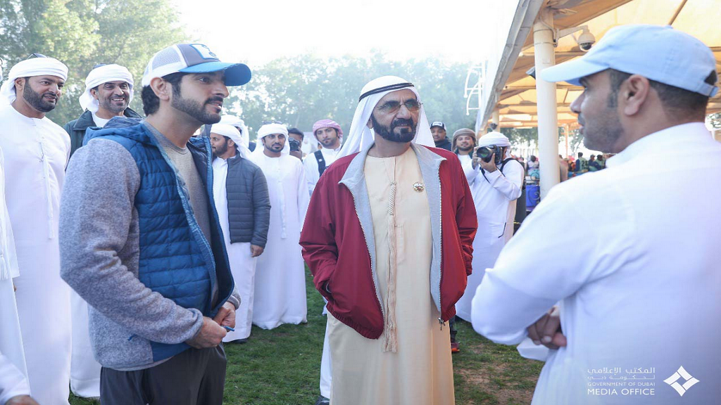 وقدم صاحب السمو الشيخ محمد بن راشد آل مكتوم التهنئة لسمو الشيخ حمدان بن محمد بن راشد آل مكتوم بعد وصول الفارس سعيد الحربي إلى خط النهاية وحلوله بالمركز الأول.