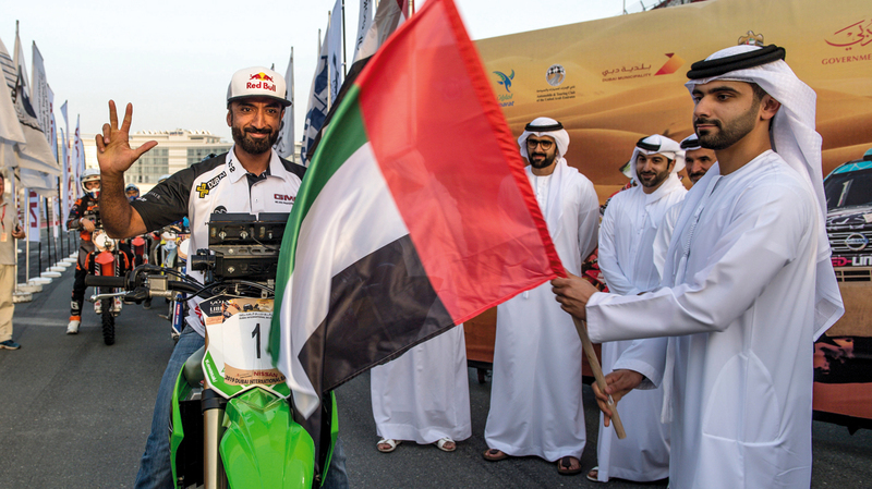 منصور بن محمد يعطي شارة انطلاق «رالي دبي»