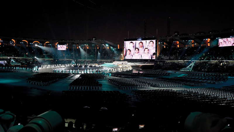 وقبيل انطلاقة حفل الافتتاح، قدم طيارو «الاتحاد للطيران»، وفرسان الإمارات، عروضاً جوية في سماء مدينة زايد. وتميز الحفل بلوحات فنية رائعة، وبالعديد من الرسائل الإنسانية، التي تؤكد على دعم فئة أصحاب الهمم، وسط متابعة آلاف الأشخاص الذين غصّت بهم المدرجات، بخلاف عشرات الملايين ممن تابعوا الحفل عبر شاشات التلفزة.