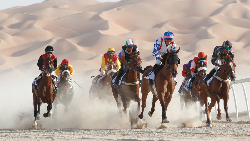 سباق محتدم شهده سباق ليوا للخيول العربية الأصيلة في منطقة الظفرة. من المصدر