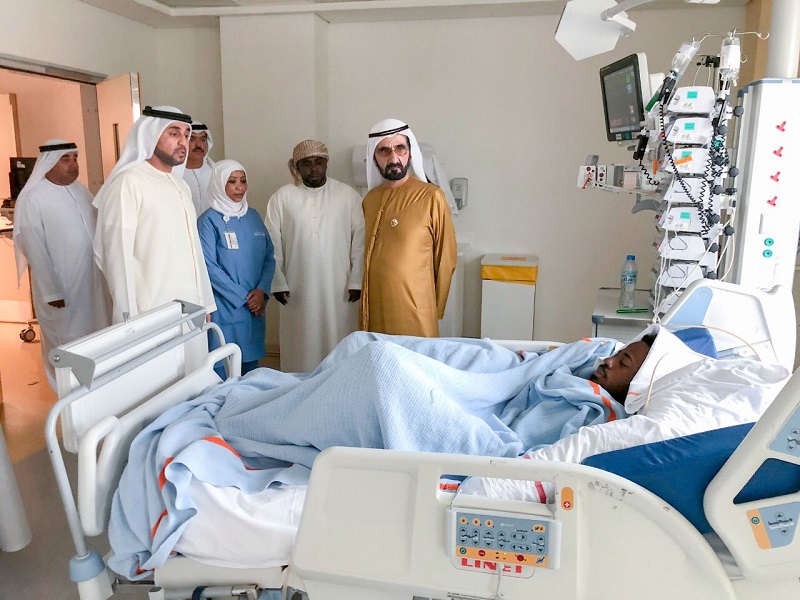 محمد بن راشد يزور لاعب الجزيرة أحمد ربيع ويطمئن على حالته الصحية