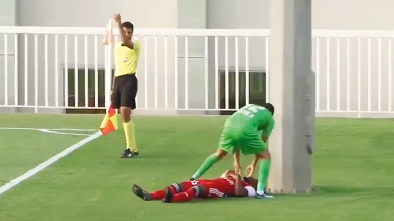 حمّل رياضيون، اتحاد كرة القدم، مسؤولية إصابة لاعب فريق الجزيرة، أحمد ربيع، الذي يتلقى العلاج حالياً بمستشفى راشد في دبي، إثر تعرّضه لنزيف داخلي في الرأس، بعد اصطدامه بعمود إنارة أحد الملاعب الفرعية لاتحاد الكرة في دبي، الذي استضاف المباراة الودية التي جمعت الجزيرة مع فريق الإمارات، مشددين على ضرورة تشكيل لجنة تحقيق عاجلة لكشف ملابسات ما حدث ومحاسبة المقصرين، مطالبين بضرورة توافر اشتراطات السلامة في الملاعب التابعة لاتحاد الكرة التي تستضيف المباريات الودية وتدريبات المنتخبات الوطنية بمختلف مراحلها، فضلاً عن أهمية توافر سيارات الإسعاف في مثل هذه الحالات.