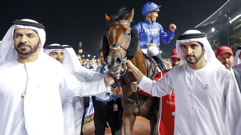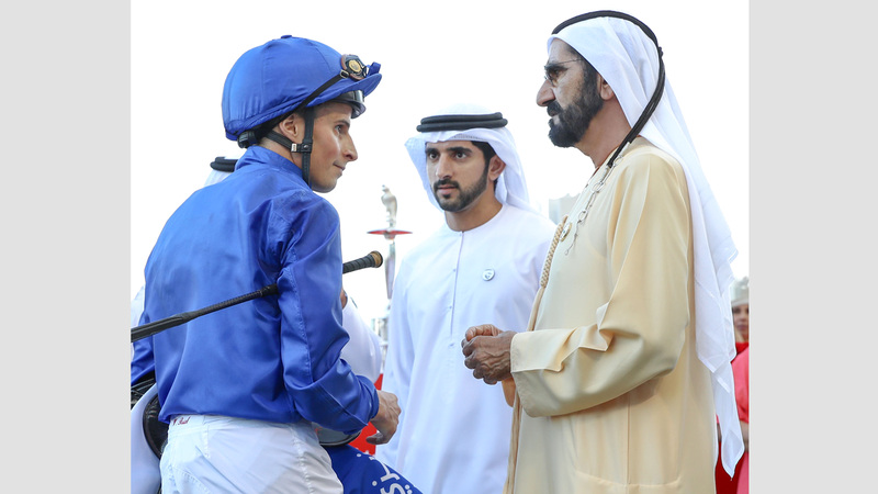 وفي ختام الحفل، تسلم صاحب السمو الشيخ محمد بن راشد آل مكتوم، بحضور سمو الشيخ حمدان بن محمد بن راشد آل مكتوم، الكأس الثمينة من سمو الشيخ حمدان بن راشد آل مكتوم.