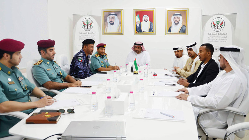 ضم الاجتماع: الأمين العام للمجلس، عيسى هلال الحزامي، ومدير عام الإدارة العامة للعمليات المركزية، العقيد الدكتور أحمد سعيد الناعور، والعقيد عاشور سبيت بن عاشور، والمقدم عبدالرحمن بن محمد النعيمي من القيادة العامة لشرطة الشارقة، والرائد عماد علي المرشدي من الإدارة العامة للدفاع المدني، والمهندس ماجد عبدالعزيز الخميري، والمهندس مصعب الأمين من هيئة الوقاية والسلامة، والمهندس محمد عبدالله لوتاه من دائرة الأشغال العامة، والمهندس محمد طارق من قسم المنشآت الرياضية، ورئيس قسم العلاقات العامة بالمجلس إبراهيم سيف.