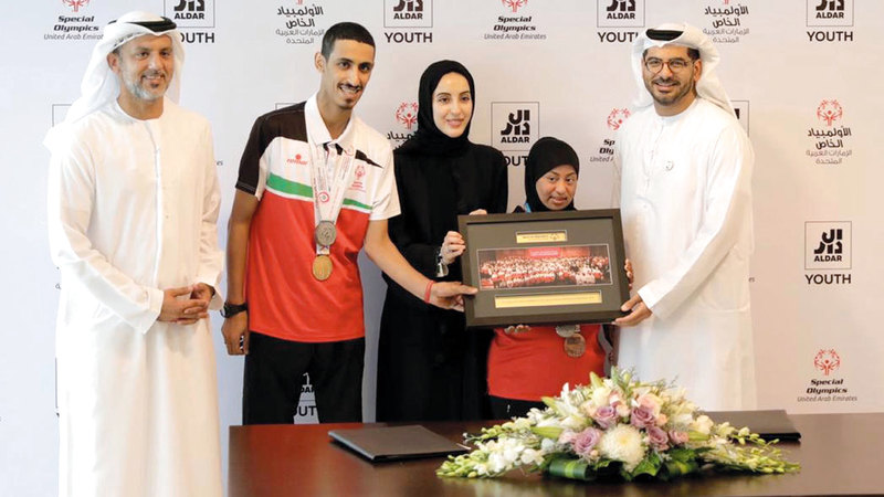 من اتفاقية الرعاية بين «الدار العقارية» والأولمبياد الخاص الإماراتي بحضور شما المزروعي. من المصدر