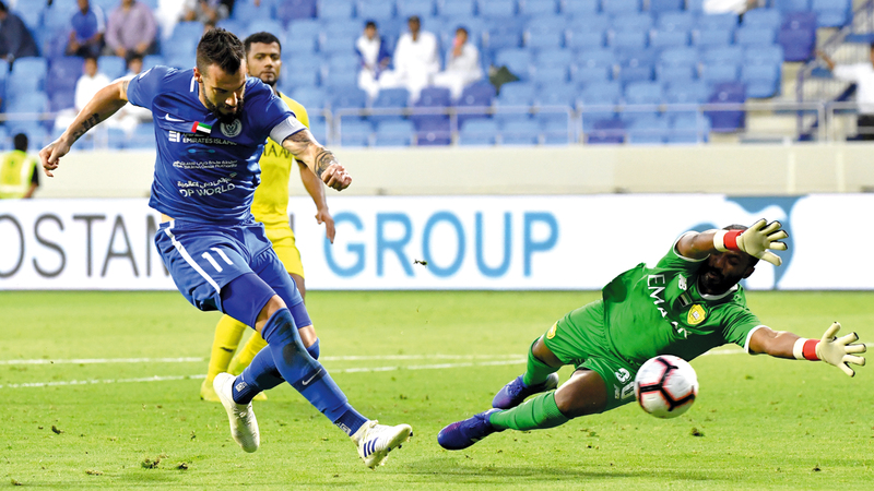 نيغريدو تألق أمام الوصل وسجل «هاتريك». تصوير: أسامة أبوغانم