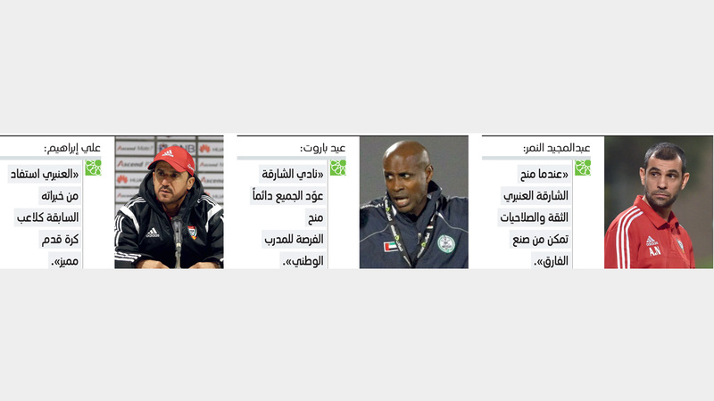 وقالوا لـ«الإمارات اليوم» «العنبري يعد حالياً مصدر فخر وإعزاز لكل مدرب إماراتي في كرة القدم بعدما أثبت أنه بإمكان المدرب الوطني التفوق على كبار المدربين الأجانب حال توافرت له الظروف التي تمكنه من القيام بعمله على أكمل وجه».