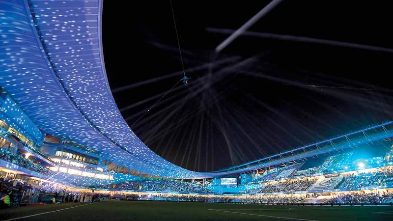 تزين الإطار الخارجي لاستاد هزاع بن زايد بألوان علم الدولة، خلال استضافته، أمس، المباراة النهائية لكأس رئيس الدولة لكرة القدم، التي جمعت فريقي شباب الأهلي والظفرة، في وقت ازدانت فيه المدرجات بالحضور الجماهيري الكبير، الذي امتلأت به أركان الملعب.