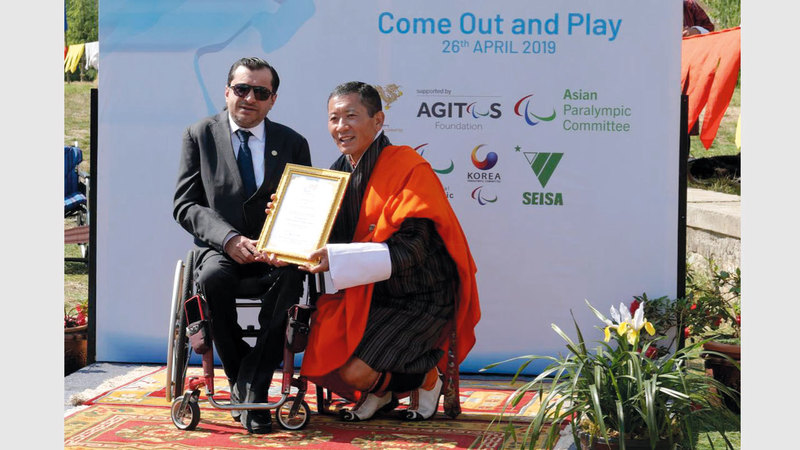 كرّم رئيس وزراء مملكة بوتان، الدكتور لوتاي تشرينج، بالعاصمة البوتانية تيمبو، رئيس اللجنة البارالمبية الآسيوية، ماجد العصيمي، تثميناً للدور الكبير الذي لعبه في الدورة الماضية للجنة البارالمبية الآسيوية، من أجل تطوير رياضة «أصحاب الهمم»، وكانت اللجنة البارالمبية الآسيوية برئاسة العصيمي، قد وضعت خريطة تطوير واضحة المعالم عنوانها البارز «ماذا تريد آسيا».