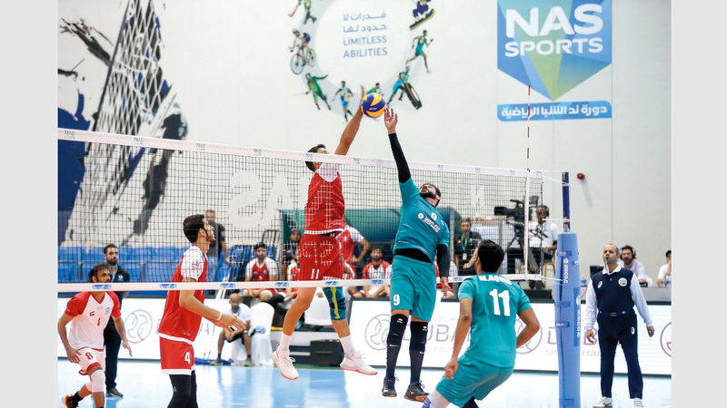 جانب من منافسات الكرة الطائرة التي تقام للعام السابع ضمن فعاليات دورة ند الشبا الرمضانية التي تشهد إثارة وندية وحضوراً جماهيرياً كبيراً.