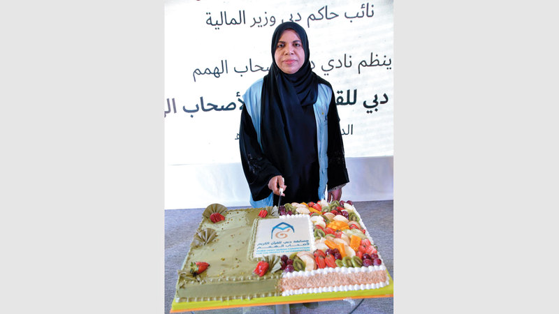 وترتبط عائشة الحمادي (50 عاماً) بصداقة قوية تجمعها بالمنتسبين لنادي دبي، وتحرص في كل سنة على إحضار كعكة خاصة، باتت رمزاً للصداقة التي تجمعها بأصحاب الهمم.