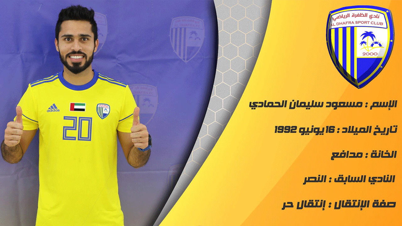 أعلنت شركة نادي الظفرة لكرة القدم بصورة رسمية عن تعاقدها مع المدافع مسعود سليمان في صفقة انتقال حر قادماً من صفوف فريق النصر ليكون بذلك أول صفقات "فارس الظفرة" تحضيراً للموسم الجديد.
