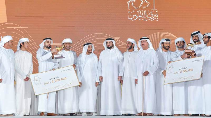 وأقيم حفل التكريم في «قلعة الرمال» على الطريق بين دبي والعين، وحضره جمع من أبناء القبائل ومُلّاك الإبل من مختلف أنحاء الدولة، إذ كرّم سموّ الشيخ أحمد بن محمد بن راشد آل مكتوم، الفائز بالمركز الأول والحائز «بيرق الناموس»، الذي كان من نصيب محمد راشد بن غدير الكتبي، فيما جاء في المركز الثاني مكرر كل من سيف بن كليب الكتبي، وفرج بن حمودة الظاهري، وبلغت القيمة المالية للجائزة نحو 10 ملايين درهم وزعت على الفائزين الثلاثة.