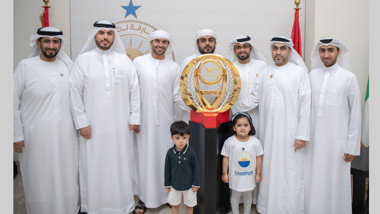 جمهور الشارقة يتدافع لالتقاط الصور التذكارية مع درع الدوري