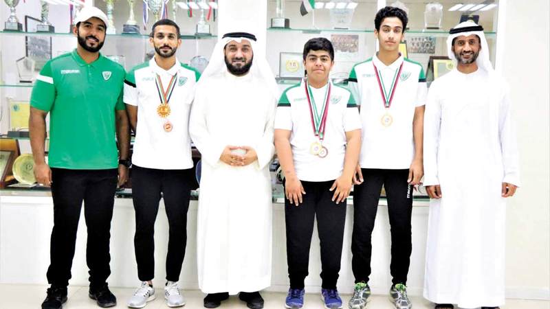عبدالعزيز النعيمي خلال تكريم أبطال النادي. من المصدر