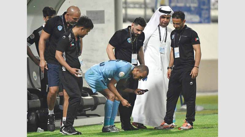 اللاعب ياسين البخيت فقد بعض أسنانه خلال مباراة فريقه السابق دبا مع الشارقة الموسم الماضي. تصوير: أسامة أبوغانم