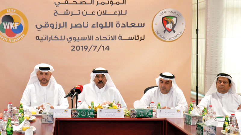 أعلن اتحاد الإمارات للكاراتيه، رسمياً، عن ترشح رئيس مجلس إدارة الاتحاد النائب الأول لرئيس الاتحاد الدولي، اللواء ناصر عبدالرزاق الرزوقي، لخوض انتخابات رئاسة الاتحاد الآسيوي في دورته الجديدة الممتدة لأربع سنوات مقبلة، والمقرر إجراؤها في الـ18 من الشهر الجاري بالعاصمة الأوزبكية طشقند على هامش البطولة القارية الـ14 للرجال والسيدات المؤهلة لأولمبياد طوكيو 2020.