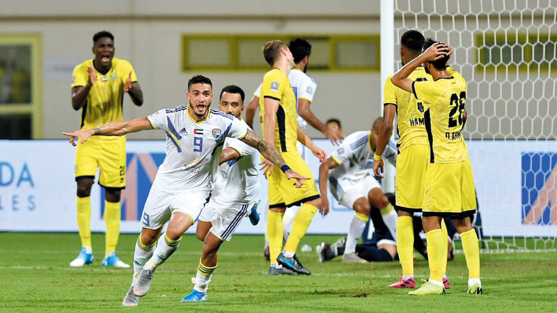 فرحة لاعبي الظفرة بالفوز على كلباء. من المصدر