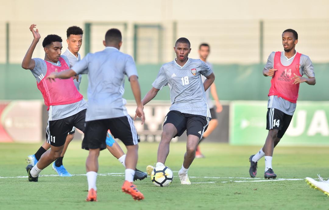 ويؤدي المنتخب تدريباته اليومية على ملعب ذياب عوانة بمقر اتحاد الكرة في دبي بقيادة المدرب ميلين.