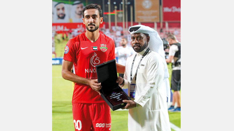 تسلم مدافع شباب الأهلي يوسف جابر، جائزة لاعب الأسبوع عن الجولة الأولى من مسابقة «فانتاسي دوري الخليج العربي». جاء ذلك قبل انطلاق مباراة فريقه أمام الفجيرة على استاد راشد في الجولة الثانية من الدوري.
