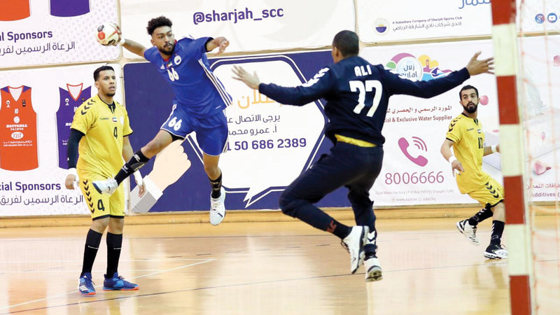 من لقاء مليحة والشارقة في افتتاح دوري أقوياء اليد. من المصدر