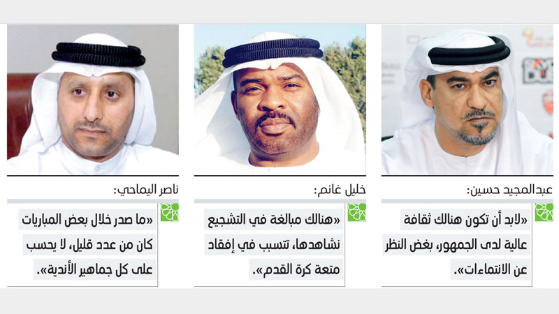 واعتبر إداريون ومسؤولون في شركات كرة القدم، في حديثهم لـ«الإمارات اليوم»، أن قرار رابطة المحترفين إلغاء المسافة بين جمهور الفريقين يحتاج إلى مرحلة تمهيدية وثقافة مجتمعية قبل تطبيقه، بسبب التعصب الذي لايزال يبدر من بعض المشجعين.