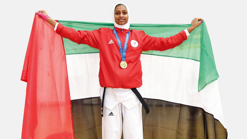بدرية محمد المتوجة بذهب التايكواندو. من المصدر