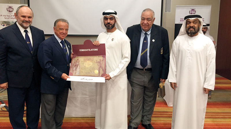 وجاء التكريم على هامش إقامة دورة المحكمين، التي نظمتها أكاديمية الاتحاد الدولي في فندق نوفوتيل بالفجيرة تزامناً مع إقامة بطولة العالم لبناء الاجسام. وتم كذلك تسليم المدربة السعودية أروى نايف شهادة الماجستير، لتصبح أول مدربة عربية تنال هذه الشهادة.