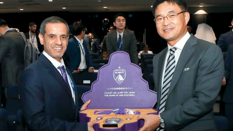 العين أهدى الاتحاد القاري «الصندوق البنفسجي»، ويشتمل على قرص مدمج، وأمور أخرى، ويوفر المعلومات كافة عن النادي ومدينة العين.