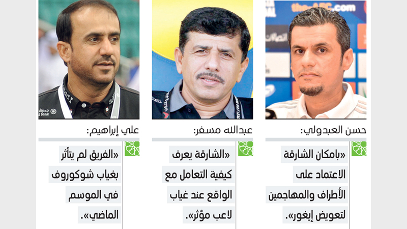 وأضاف «هناك بعض الفرق من بينها الشارقة تعرف كيفية التعامل مع الواقع عند غياب لاعب مؤثر جداً في صفوفها، كما أن الشارقة لديه النظرة الفنية التي تمكنه من إيجاد الحلول البديلة حال غياب أي لاعب مؤثر عن صفوفه».