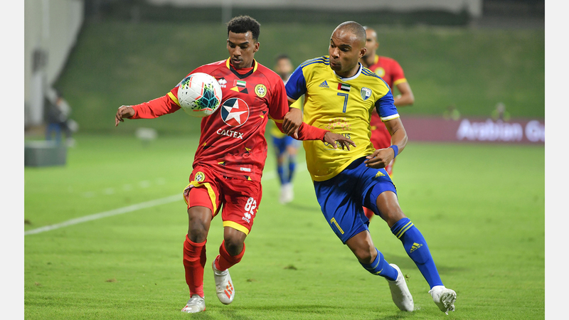 صراع على الكرة بين روشوفيل (يمين) وسلطان الزعابي. تصوير: نجيب محمد