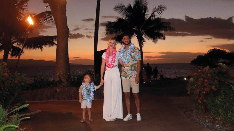 تباهى بقضاء لحظات رائعة مع أسرته على الرمال الساحرة