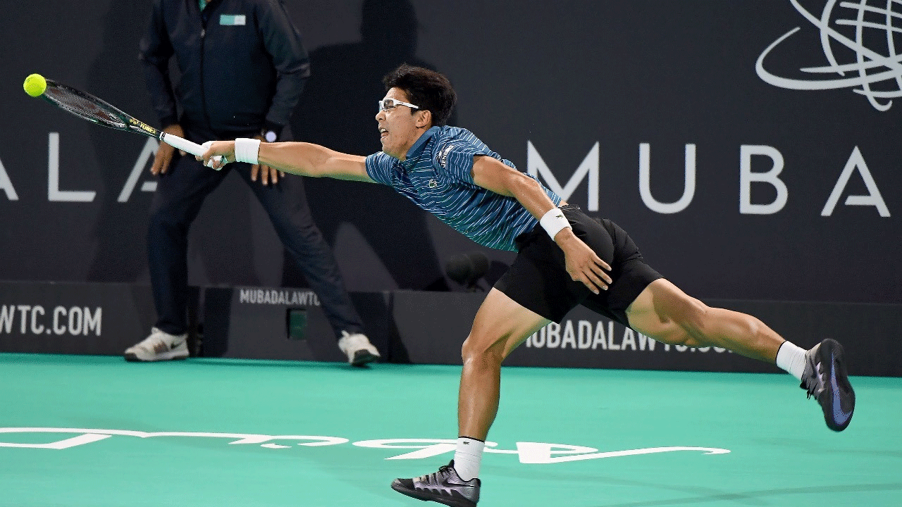 وقد خاض، أمس، الكوري تشونغ (23 عاماً)، أولى مبارياته في بطولة مبادلة العالمية للتنس التي تقام في الفترة من 19 إلى 21 الجاري، في مركز التنس الدولي بمدينة زايد الرياضية في أبوظبي.