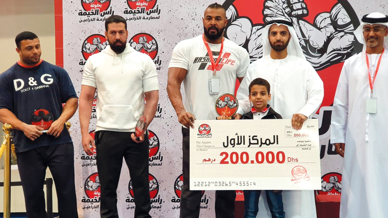ولي عهد رأس الخيمة يكرّم أبطال «مصارعة الذراعين»