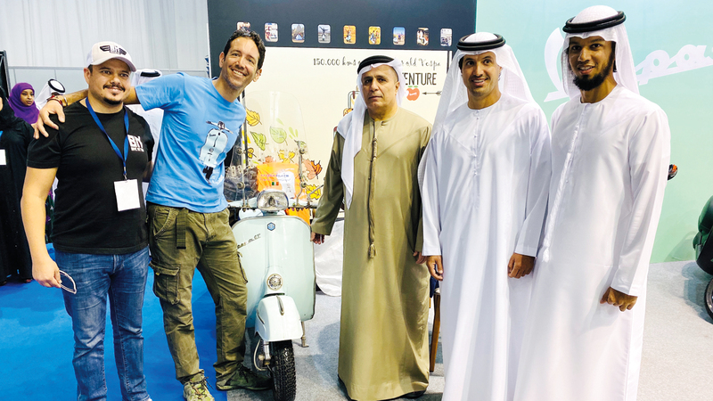 والتقى الطاير مع أحد المغامرين، الذي يزور الدولة حالياً في إطار رحلة حول العالم على دراجة نارية من طراز «فزبة»، وزار 69 دولة حتى الآن، وسيتوجه بعد ختام المعرض إلى أستراليا لاستكمال جولته العالمية، وسيزور في الطريق عدداً من الدول.