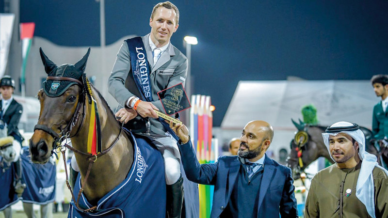 وأقيمت منافسات الجائزة الكبرى بمواصفات الجولة الواحدة مع جولة للتمايز، على حواجز تراوح ارتفاعها بين 150 و160 سم، وتنافس فيها 50 فارساً، نجح منهم ستة فرسان في إكمال الجولة الرئيسة دون خطأ، وتجدد التنافس بينهم في جولة التمايز، وأكملها من دون خطأ ثلاثة فرسان، وتصدرهم الفارس كريستابس نيرتنكس الذي سجل 34:79 ثانية، وحل في المركز الثاني الفارس البريطاني، وليم فونيل، على صهوة الجواد «بيلي ديامو» بزمن بلغ 37.35 ثانية، وحل ثالثاً مواطنه الفارس جاك ويتكر على صهوة الجواد «إلوكار في إي» مسجلاً 38.50 ثانية.