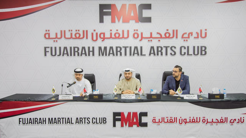 من المؤتمر الصحافي بنادي الفجيرة للفنون القتالية. من المصدر